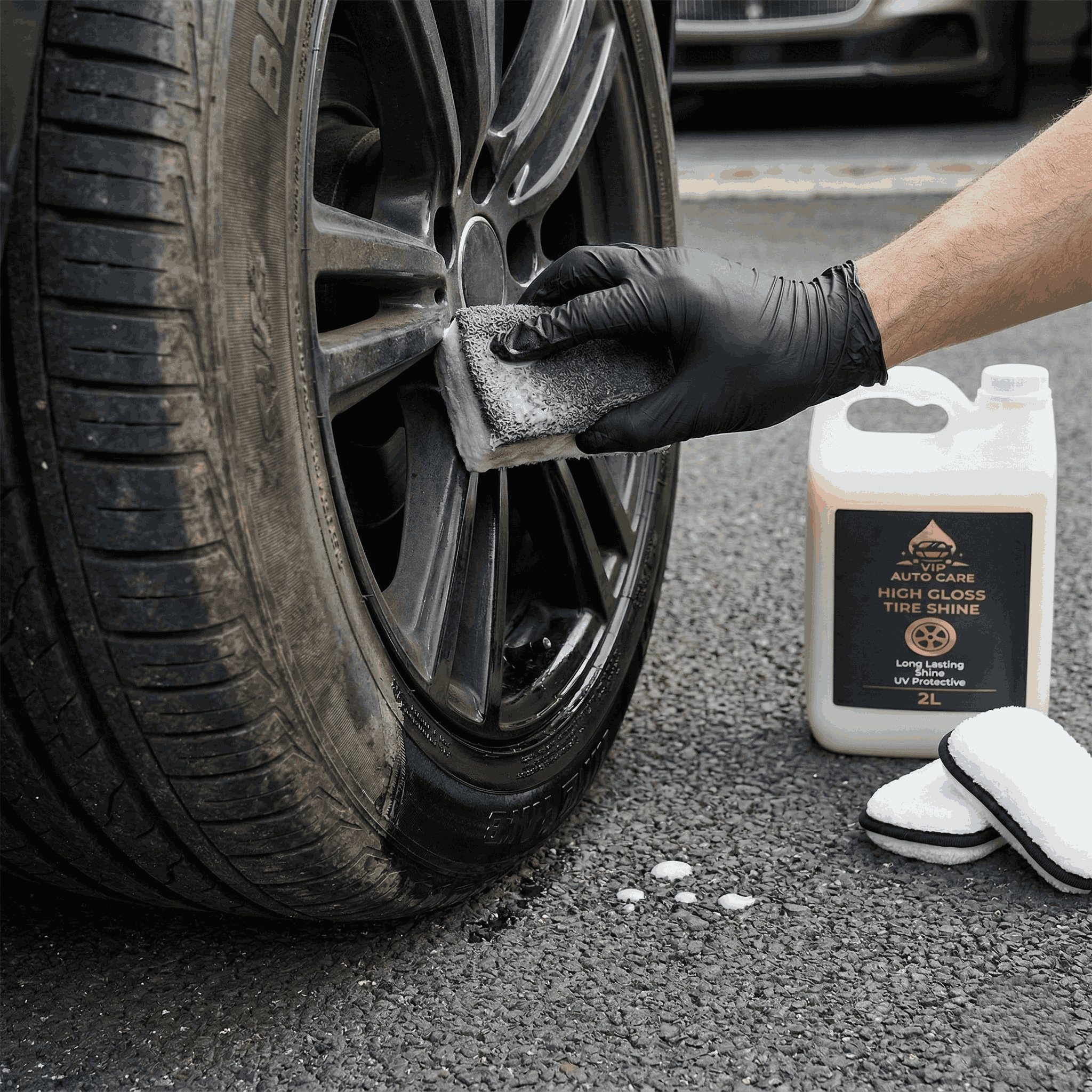 2. Spray directly onto clean tires or onto a foam applicator pad.