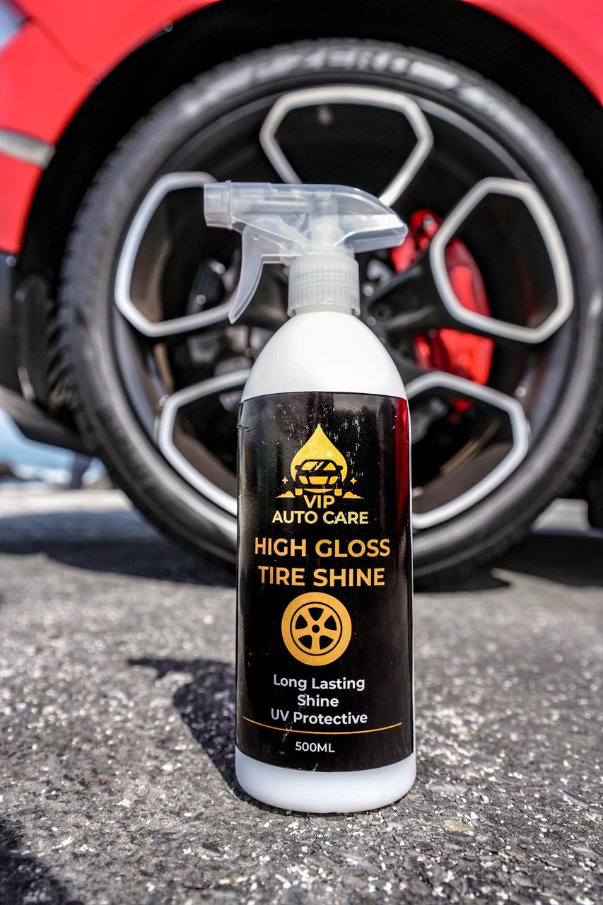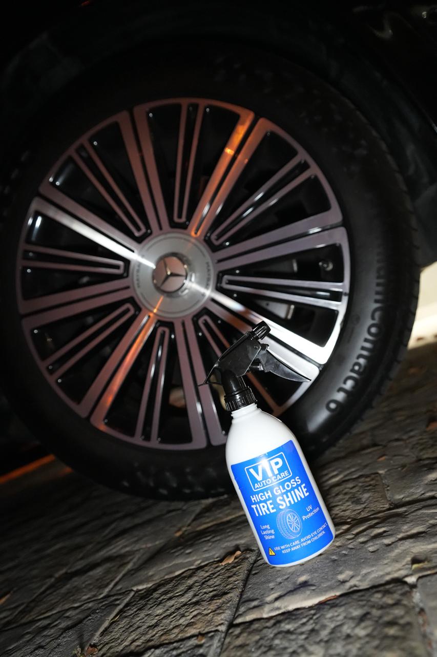 VIP High Gloss Tire Shine is a ready-to-use premium formula designed to deliver a deep, long-lasting shine to tires, rubber trims, and exterior moldings.